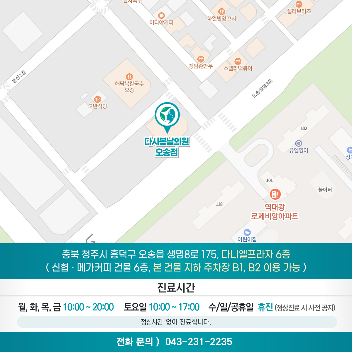 수/일/공휴일 휴진 ( 정상진료 시 사전 공지)